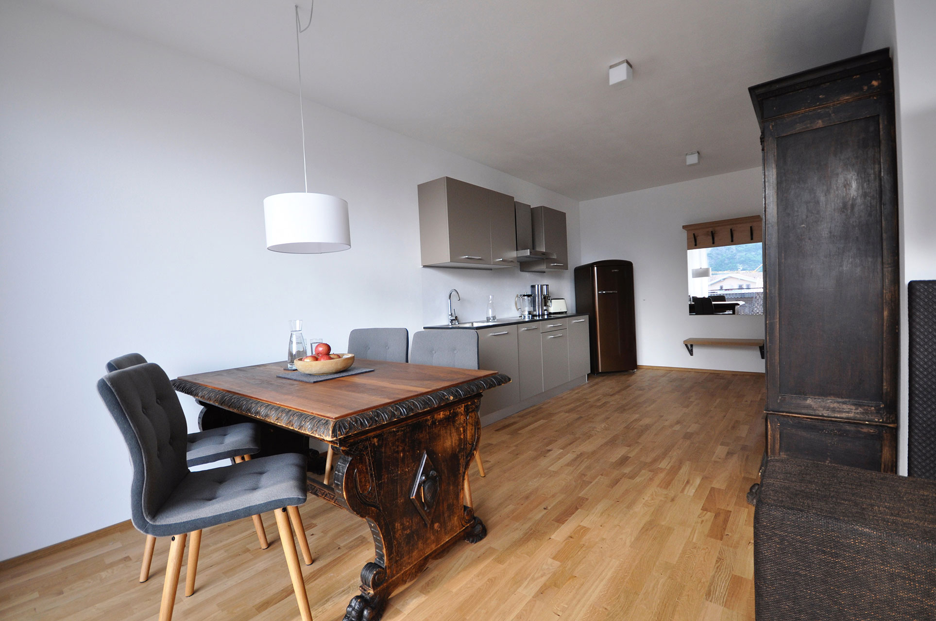 Vivete la vostra vacanza in questo luminoso appartamento di nuova costruzione al 1° piano. Il balcone si estende da sud a ovest e permette di godersi l'alba e il tramonto e l'accattivante vista sulle nostre montagne.
